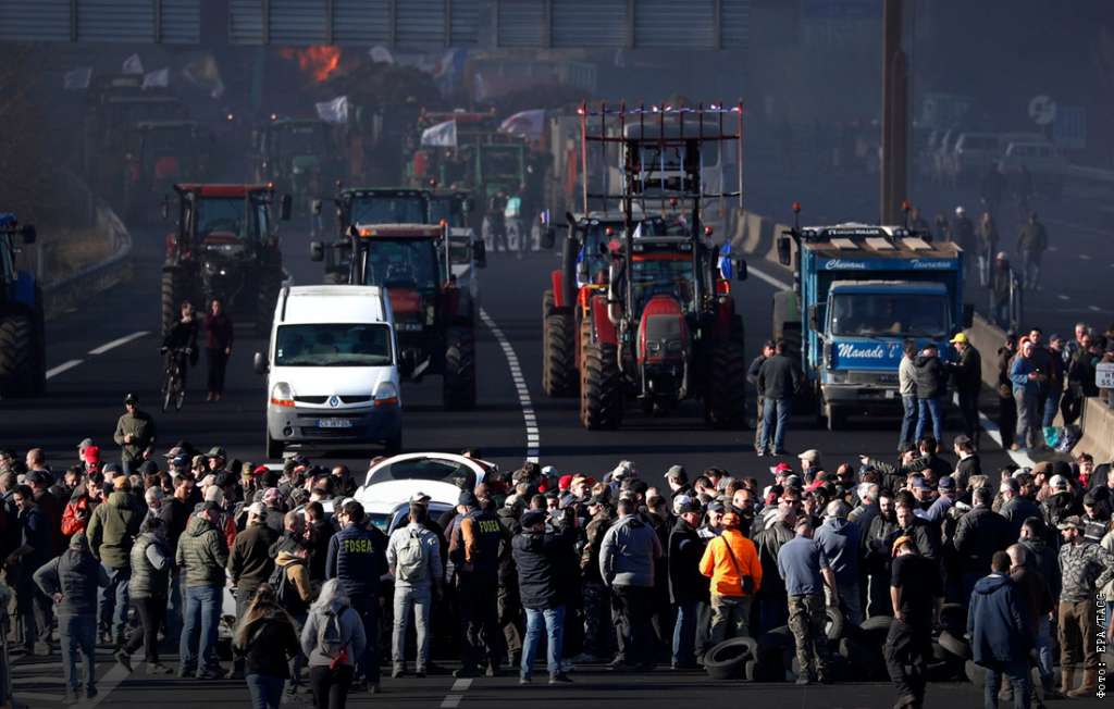 Фермеры Франции хотят организовать полную блокаду Парижа. 27 января 2024 года французский профсоюз фермеров Jeunes Agriculteurs выразил намерение организовать блокаду Парижа и его пригородов с целью препятствовать поставкам товаров в столицу. Об этом заявил представитель организации Максим Бюизар в интервью каналу BFM TV. По словам Бюизара, блокада начнется в ночь на понедельник, и фермеры планируют контролировать ведущие дороги в городе «столько, сколько необходимо», чтобы создать нехватку продукции. Представитель Jeunes Agriculteurs добавил, что подготовка к такой масштабной блокаде займет некоторое время, поэтому профсоюз приостановит свои акции протеста на выходных. Бюизар также считает, что предложенные премьер-министром Габриэлем Атталем меры недостаточны и не соответствуют масштабу аграрных протестов. Ранее правительство заявило, что «слышит и понимает» трудности, с которыми сталкиваются фермеры. Атталь также сообщил, что власти отказываются от увеличения налога на дизель, что б