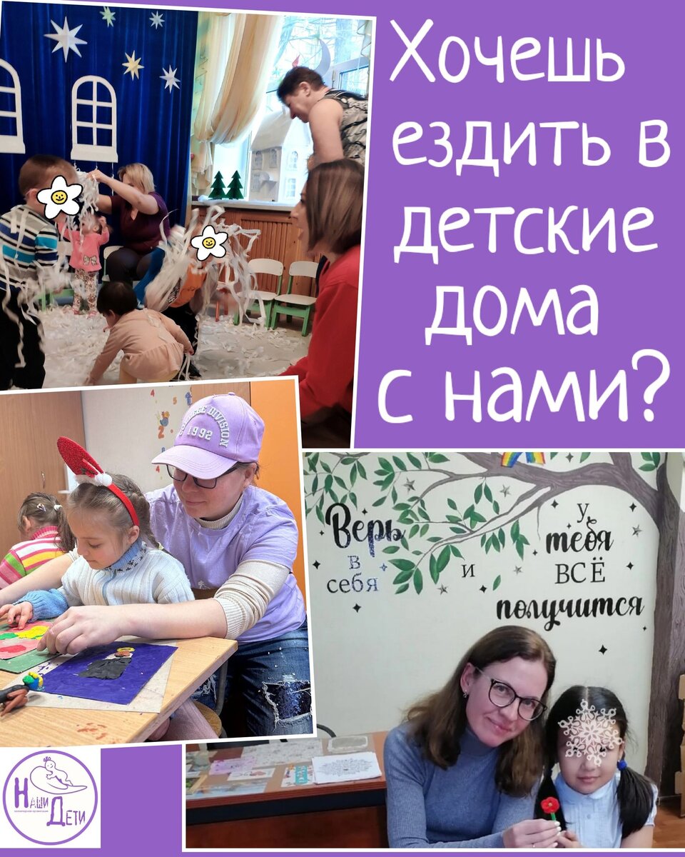 Приоткроем завесу тайны и расскажем о наших поездках в Детские Дома.🙌 Сейчас на регулярной основе мы посещаем: 💟 Воспитательный Дом на Стойкости, где проживают нормотипичные дети разных возрастов. Ездим туда в разные дни, преимущественно в выходные. 💟 Психоневрологический дом ребенка на Черной Речке, где проживают малыши до 4-х лет. Посещаем по будням утром, чаще всего по средам. 💟 Павловский Дом-Интернат N4, где проживают дети с особенностями здоровья. Поездки в выходные, чаще всего по субботам, иногда нас приглашают на мероприятия на буднях. 💟 Зеленогорский Дом-Интернат N3, где также дети с особенностями здоровья, поездки по субботам и воскресеньям, иногда на буднях мы помогаем в проведении поездок и мероприятий. Также нерегулярно мы ездим в другие учреждения. У каждого Дома-Интерната есть свой куратор и свой чат, где появляется информация о предстоящих поездках. Чаще всего для ребят мы проводим мастер-классы, которые обсуждаем заранее. Занятия подготавливаются исходя из возра