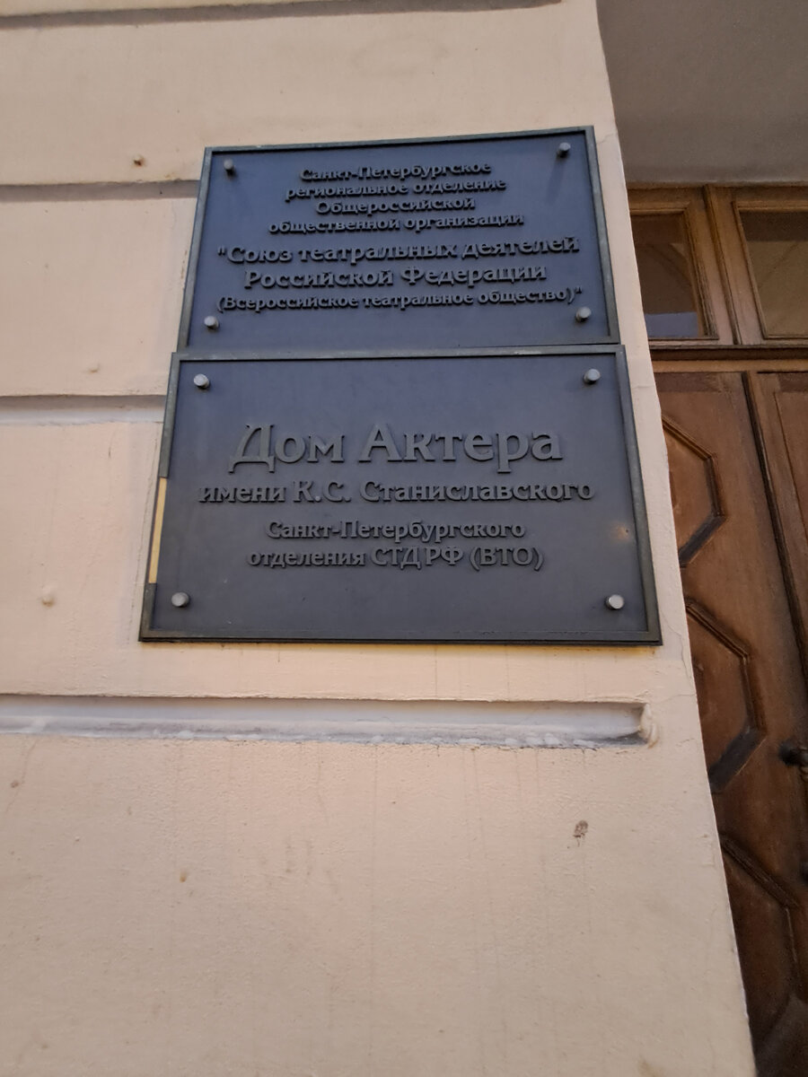 Дом актера находится в бывшем особняке Юсуповой и для свободного посещения закрыт. Свободно рассматривать интерьеры могут те, у кого есть служебное удостоверение. Ещё один способ - купить билет на одно из мероприятий. Мне удалось попасть на спектакль театрального фестиваля. Постановку «БЛОК. XII. История одной улицы» показывали актеры музыкально-актерского содружества «ПАРИ». Само содружество появилось недавно и спектакль премьерный. На мой взгляд, интересный, динамичный, с потрясающими вокальными номерами. Но билеты лучше брать в первые ряды. Зал не самый удобный, подъёма практически нет и хорошо видно не со всех мест. Зато отовсюду можно увидеть лепнину на потолке, фриз с танцовщицами и кариатид. Ещё немного деталей интерьеров: ротонда, парадная лестница с роскошными перилами, барельеф с профилем Станиславского. Особняк стал последним по времени постройки на Невском проспекте. В 1860-х здесь был Английский клуб, в котором часто играл в карты Николай Алексеевич Некрасов. А в 1880-х