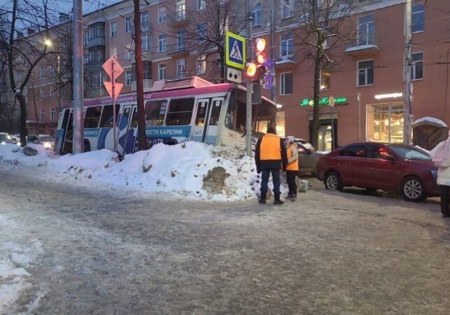 В полиции Петрозаводска по факту ДТП с троллейбусом проводится проверка. Напомним, авария произошла сегодня днем в районе 15:40 на пересечении ул. Куйбышева и пр. Ленина. По предварительной информации, водитель троллейбуса, двигаясь по Куйбышева, не справился с управлением, в результате чего произошло столкновение с двумя автомобилями. На месте ДТП работали сотрудники Госавтоинспекции. Обстоятельства выясняются. Напомним, видео появилось в телеграм-канале ДТП Петрозаводска и Карелии. Троллейбус протаранил несколько автомобилей. Они едва не въехали в пешеходов, стоящих на переходе. Остановить группу машин смог сугроб на обочине.