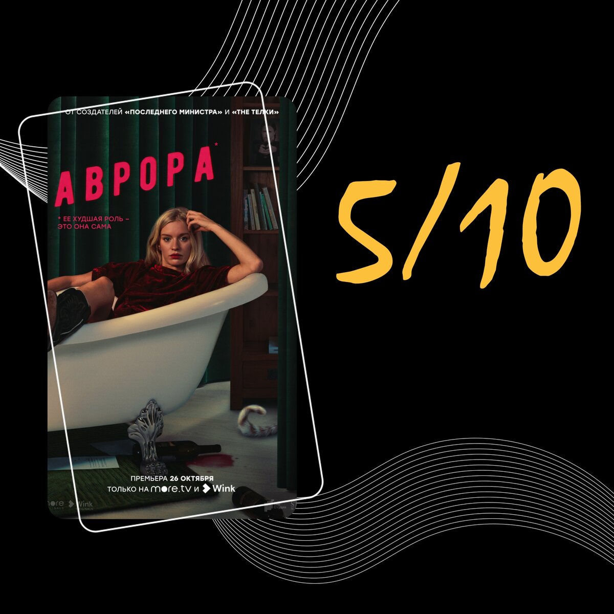 Россия, 2022, драма, триллер, сериал, 8 эпизодов Саша Зорина, в 10 лет прославившаяся на всю страну главной ролью в народном блокбастере «Аврора», спустя 15 лет работает телефонным психологом в центре профилактики самоубийств, много пьёт и без особого успеха пробует продолжить актерскую карьеру. Очень давно посматривал на данный сериал, но никак не мог до него дойти. И вот, настало его время. И как вы поняли по оценке, я разочарован. Начнём, пожалуй, с плюсов. Актёрский состав шикарен. Прекрасная Лена Тронина ("Happy end", "Идентификация") выступила в главной роли, и мне очень понравилась её игра. Также сыграли в сериале непопулярные актёры такие как: Манана Тотибадзе Ольша Богомазова, Катя Федина и другие. В проекте 8 серий, серии идут по 40 минут, смотрится на одном дыхании, но местами очень утомительно смотреть за всем происходящим. Понравился сюжет, достаточно он интересный, но вот его развитие мне абсолютно не понравилось. Также развязку всей истории очень легко предугад