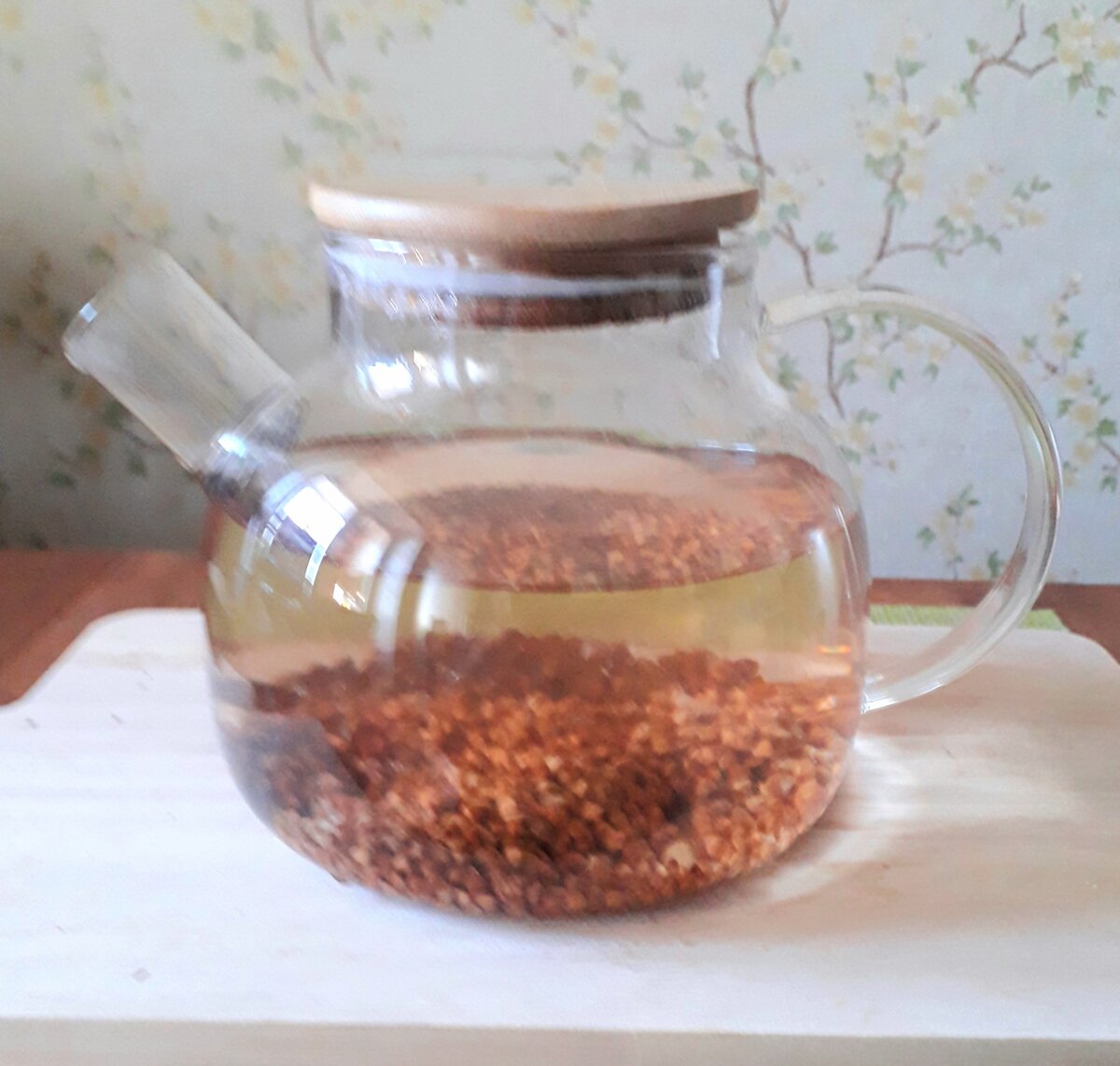 Чай вкусный и полезный. Приветствую Вас, мой дорогой читатель! Вы, молодец, что интересуетесь полезными чаями для организма. Хочу подарить Вам рецепт гречишного чая, который очистить Ваш организм от токсинов и шлаков, подарит красоту и молодость. Сомневаетесь? Тогда читайте: Гречишный чай помогает бороться с заболеваниями пищеварительной и сердечно – сосудистой систем. Улучшает метаболизм, борется с чувством голода. Гречишный чай полезно включать в рацион при снижении веса. Гречиха не содержит кофеин и глютен. В состав семян гречихи входят витамины – А,В1,В2,В3,В6,Е. Микро и макроэлементы – магний, натрий, калий, кальций, цинк, селен, медь, железо, марганец, фосфор; олеиновая и линолевая жирная кислота; клетчатка. Чай полезно пить и беременным женщинам, чтобы облегчить токсикоз. Входящие в состав вещества полезны для плода. Мужчинам следует пить для повышения потенции. Здорово, да! Записывайте рецепт: РЕЦЕПТ: Гречневая крупа ½ стакана. Вода 1 литр. СПОСОБ ПРИГОТОВЛЕНИЯ: Крупу промыть,