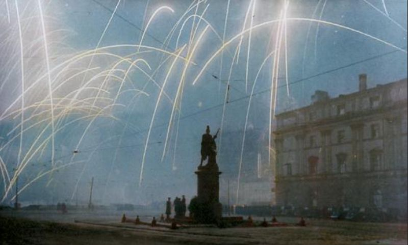 27 января 1944 года. Ленинград. У памятника Александру Суворову во время салюта в ознаменование полного освобождения города от блокады