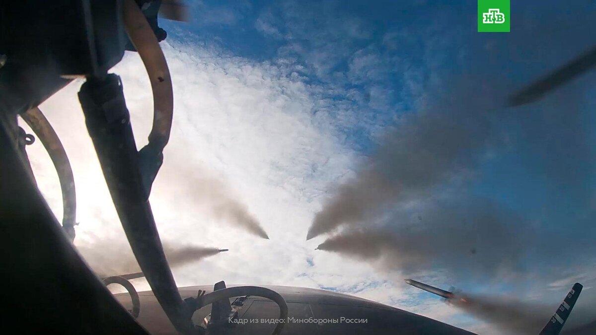 [ Смотреть видео на сайте НТВ ] Экипаж разведывательно-ударного вертолета Ка-52 «Аллигатор» нанес удар по опорному пункту украинских войск на Купянском направлении. «Вертолет Ка-52 „Аллигатор“ Воздушно-космических сил Российской Федерации уничтожил взводный опорный пункт противника на Купянском направлении зоны специальной военной операции», — сообщили Минобороны. Полет осуществлялся на предельно малой высоте. После стрельбы летчики выполнили противоракетный маневр, отстрелили тепловые ловушки и вернулись на аэродром. Согласно докладу передового авиационного наводчика, цель была успешно поражена. [ Смотреть видео на сайте НТВ ]