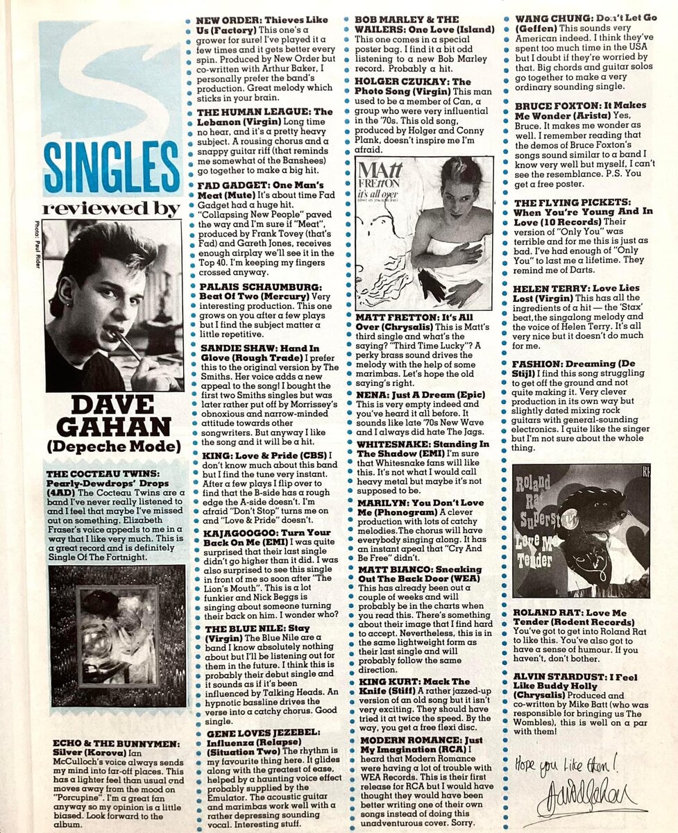 Я слышал, что у этих «современных романтиков» большие проблемы с пластинками Wea. Это их первый релиз для RCA, но я думаю, им лучше было бы написать одну из своих собственных песен, а не делать этот скучный кавер. Извините.