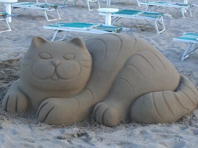 Летом делаем котиков из песка а зимой из снега и льда