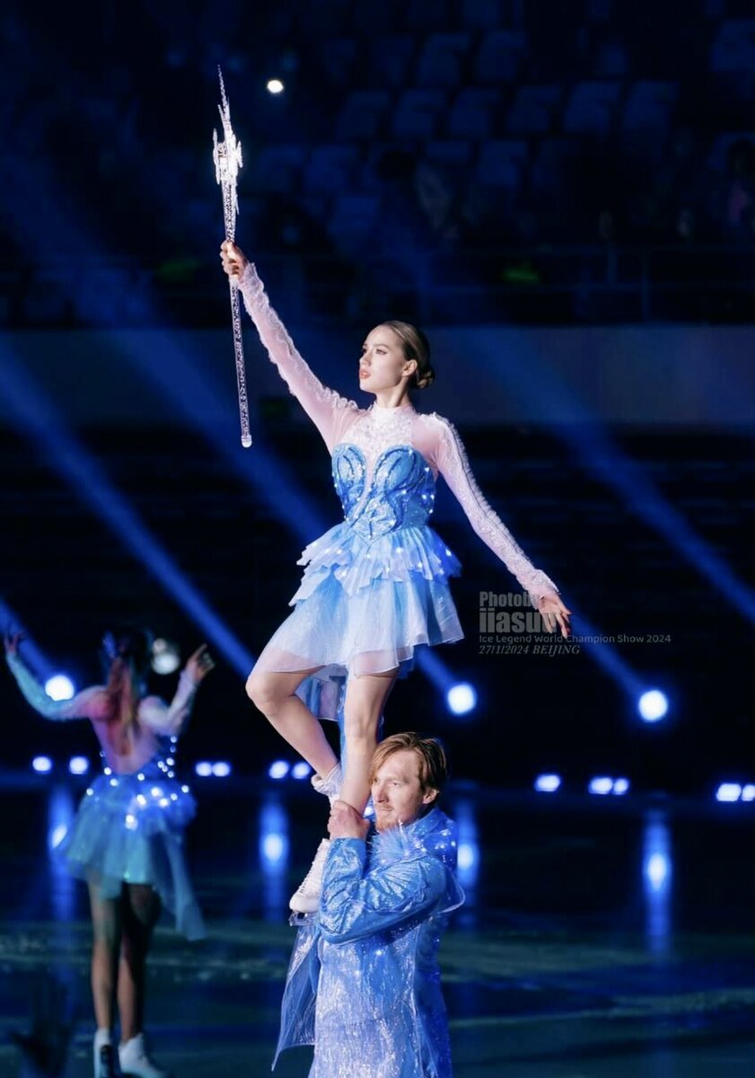 Всем любителям фигурного катания пламенный привет!!! Буквально на днях и сегодня в Пекине прошло шоу "Ice Legend", в котором принимали участие наши фигуристы. А именно Алина Загитова, Евгения Медведева, Елизавета Туктамышева, Михаил Коляда, Иван Букин/Александра Степанова и Евгения Тарасова/ Владимир Морозов. Невероятный состав для китайской публики, прям хотелось бы побывать на их месте и увидеть всю эту красоту своими глазами. Алина представила публике программу "Эсмиральда", Медведева "Аллегорию", Туктамышева "Shallow". Общий номер наших звёзд фигурного катания был просто невероятной красоты, вот небольшой отрывок: Я считаю, что это очень круто, что после завершения карьеры фигуристов приглашают на разные шоу, особенно в Китай, где невероятные болельщики. Хочу представить вам фотографии сделанные во время данного шоу: Была прям неожиданность увидеть Алину опять в этой роли. Очень красивая программа, платье, сама Алина прекрасно дополняет свой образ. Тоже очень крутая программа