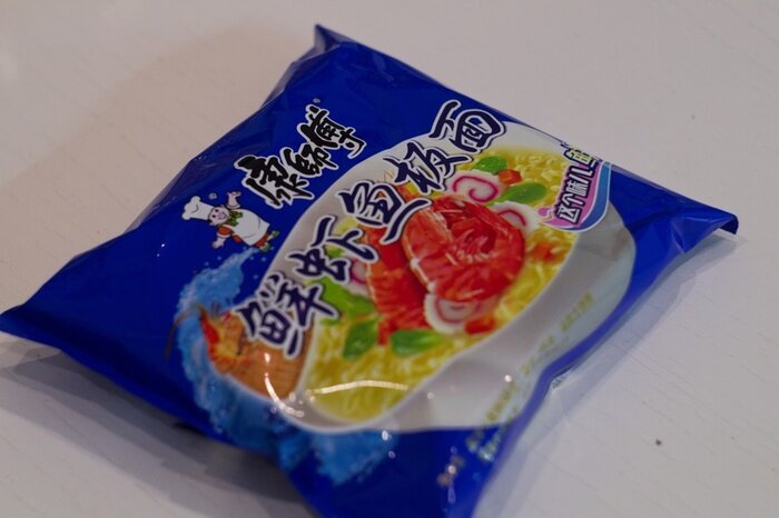 Доброго времени суток дошираколюбители и эксперты в области лапшепоедания. Продолжаю как и обещал пробовать разные вкусы одного передовика лапшестроения, а именно легендарного Мастера Кана! Сегодня посмотрим на комплектацию и попробуем лапшу со вкусом креветки. Давайте посмотрим что находится внутри этого праздника красок. В комплект лапши входит: непосредственно сама лапша, пакетик с сухим бульоном, красный пакет с «мокрым» концентратом бульона и сушеные овощи. Интересным в данном наборе будет пакетик с сушеными овощами, такой же красочный как и упаковка. Заварка ничем не отличается от другой, подобной лапши. Высыпать все ингредиенты в тарелку, залить кипятком, примерно 500 мл, можно больше или меньше, в зависимости от того, насколько крепким хочется бульон. Бульон здесь очень насыщенный и яркий, с выразительными нотками морепродуктов. Наваристый но при этом лёгкий, не острый отдаленно напоминающий уху. После залития кипятком комната наполняется восхитительным ароматом свежезаваренног