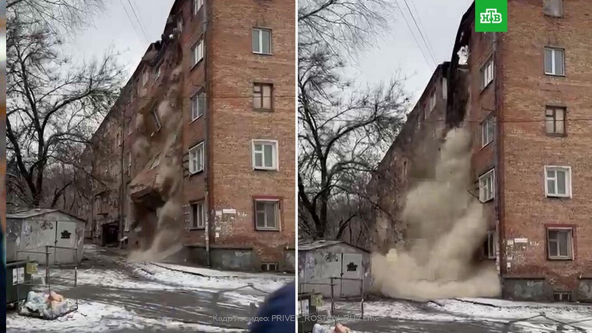 Момент обрушения подъезда аварийного дома в Ростове-на-Дону попал на видео