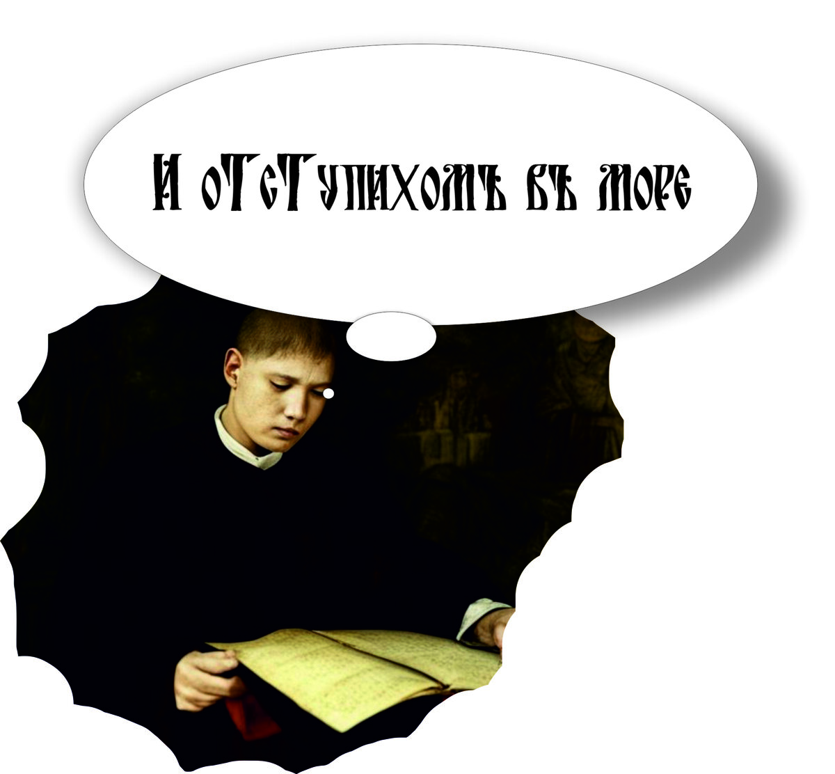 И отступихомъ въ море, и бысть о полунощи кораблю стоящю на якорѣ