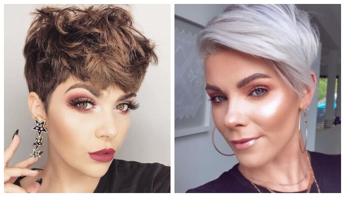 Для некоторых ультрамодная короткая стрижка «пикси» может показаться капризной в процессе укладки, но мы постараемся сегодня развеять данный миф и показать на конкретных примерах интересные и главное простые идеи причесок для актуальной модели стрижки. Читайте и вдохновляйтесь вместе с нами! Сама по себе стрижка «пикси» имеет идеальный прикорневой объем, который ярко выражен, как на тонких, так и на густых от природы волосах, следовательно, пользоваться вспомогательными средствами, для объема, нет надобности. На пике популярности в этом году будет легкая небрежность в прическах, чтобы добиться данного эффекта в стрижке «пикси», достаточно слегка взъерошить волосы, добавив им необходимую текстуру. Ультракороткая стрижка «пикси» с выбритыми висками и косой удлиненной челкой не требует сложных и длительных укладок. Зачесанные волосы с затылка на перед добавляют внешности дерзости и сексуальности, обязательно попробуйте сделать себе данную укладку в ближайшее время и влюбитесь в нее с перв