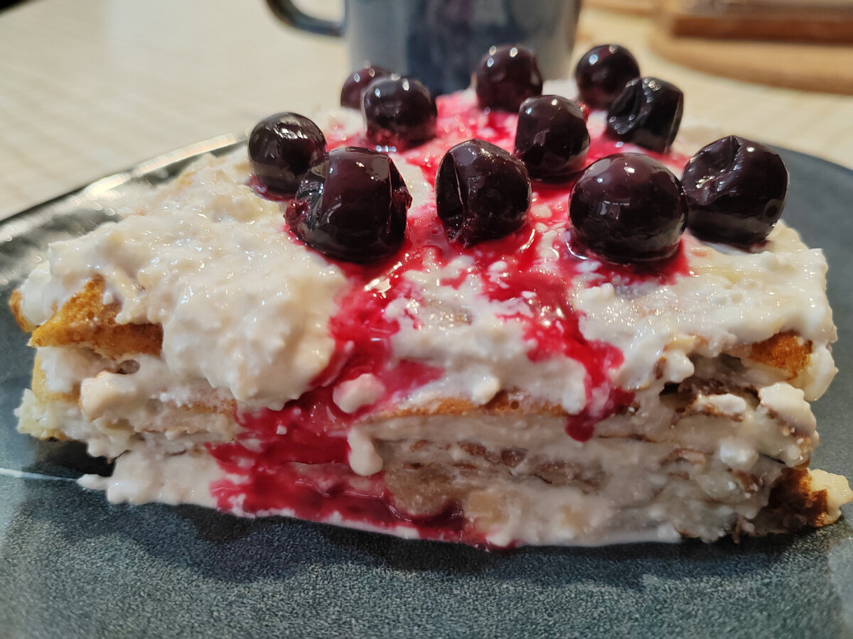 Сегодня воскресенье и я снова захотела торт на завтрак 😍 Но т.к я люблю эксперименты с едой, сегодня я поэкспериментировала с тортиком)) Рецепт: 3 ст.л овсянки, белок от одного яйца (планировалось целое яйцо, но случай распорядился иначе), чуть соли - опять таки это база 😁 К базе я добавила примерно 30 гр творога и 1/3 яблока, натертого на мелкой терке. Все взбила блендером и дала постоять минут 5, тут опять же всё стандартно. На разогретой и смазанной капелькой растительного масла сковороде, под крышкой, на маленькиом огне, запекла блин с одной стороны и оооочень аккуратно перевернула на другую сторону, получилось это сделать только при помощи доски, тк блин очень нежный и пытался распасться от всякого прикосновения. Далее этот блин разрезала на 4 части, сложила стопочкой и промазала каждый слой оставшимся тёртым яблоком и творогом (творог примерно 70 грамм ,1 ч.л сахара, сметана), сверху украсила смородиной. Получился очень очень нежный тортик, влажный, пропитанный, вкусный