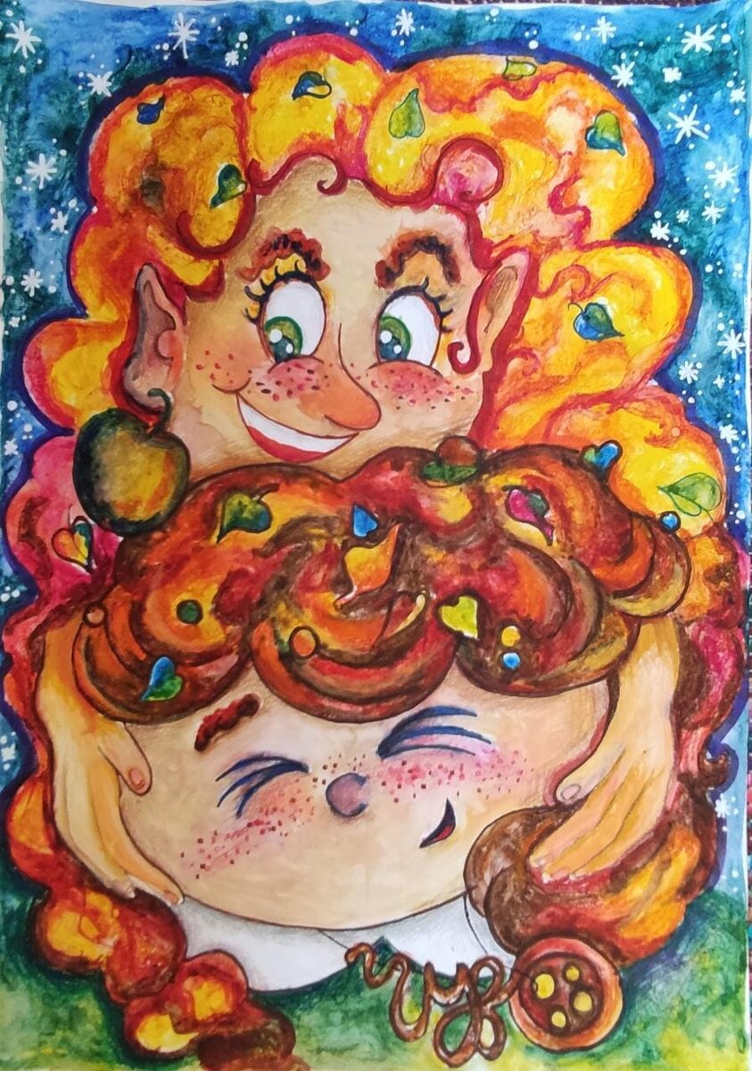 Нюся испекла вишнёвые пирожки, Оливия принесла книжку с любимыми сказками. Вместе они накрыли сделанную тыковку пледом. Правый глаз Пети ожил и начал исследовать комнату вокруг. Пирожок девочки положили ему в рот, рядом со свечкой. И левый глаза весело засиял и вместе с правым отправился в путешествие по комнате.
