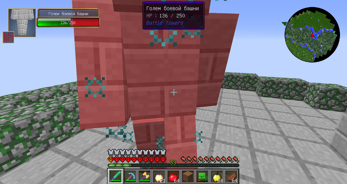 А когда я решил проверить торнадо на разрушения блоков, которые раньше не разрушались, то на меня напал босс башни, которого скинуло ко мне торнадо. Это было неожиданно и я даже дёрнулся, ибо дом был целый до сего момента, и его тупо взорвал босс-башни. Пхах, хорошо, что я торнадо не активировал этим блоком, иначе бы были проблемы.