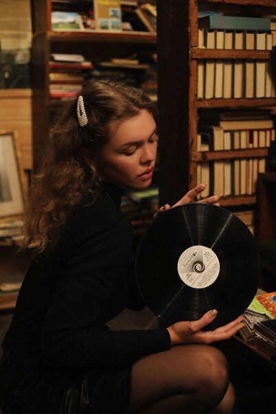 Старые картины, виниловые пластинки, ретро-телефон, стеллажи с книгами под потолок…
