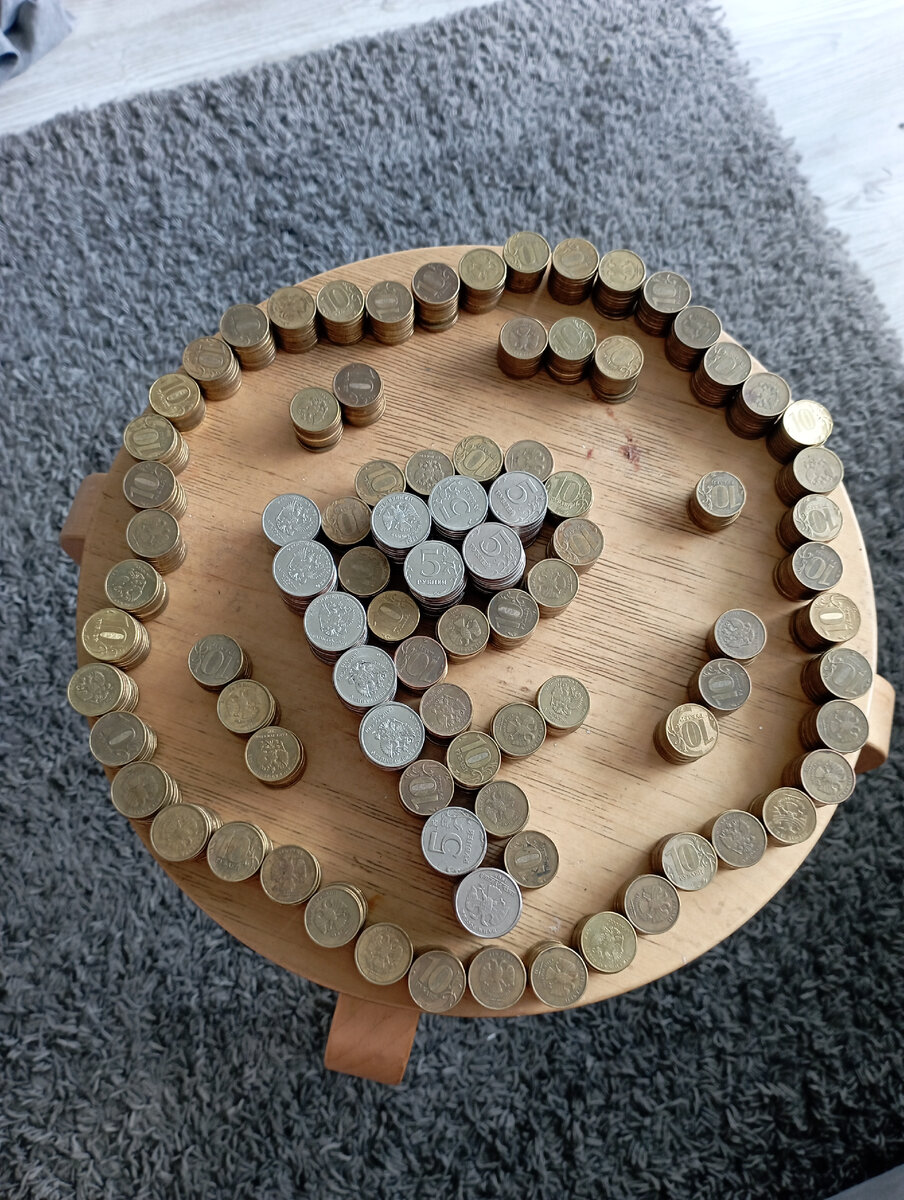 Сколько денег вмещается в полуторалитровую банку... У кого из нас не было копилок? Многие мои знакомые и сейчас балуются подомными кубышками, в надежде хоть немного скопить или сэкономить. Я один из них, и вот одна из моих копилок: монетами по 5 и 10 рублей. Более мелкие монеты отправлял в копилку сына. Сколько месяцев копилась уже и не вспомню, как и на что спустил эту "огромную сумму" Всё содержимое уместилось на табурете. Монеты стопочками по десят штук, так легче вести подсчёт. Итого: 8745 рублей... Вроде немного, но всё же приятно. Параллельно вел/виду/ведём ещё несколько копилок(бумажные и электронные), но о них в другой раз... P.S.: буду рад лайку и подписке:)