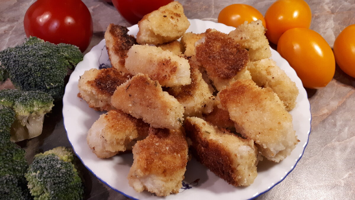 Все знают блюдо американской кухни наггетсы из курицы в хрустящей панировке, которые обжаривают в огромном количестве масла. Изобрели их в 1950 году, и они очень быстро обрели популярность в ресторанах быстрого питания. Сейчас их можно купить и замороженными для домашнего питания и готовыми в ресторанах. Слово наггетс появилось значительно раньше и означало самородки золота, оно появилось во время золотой лихорадки в 1850 году. Наггетсы любят многие, а вот рыбу нет. Как же тяжело иногда детей заставить съесть чего-нибудь полезное, а заставить съесть рыбу ещё труднее. Всем хочется гамбургеров, наггетсов и прочих широко разрекламированных неполезностей. А, между тем, Наггетсы из белой рыбы, такой как треска или минтай, отлично подойдут для обеда или ужина в кругу семьи. Они получаются очень вкусными, с идеальной хрустящей корочкой. Такие наггетсы понравятся даже детям. Их можно запечь в духовке, сбрызнув маслом или поджарить на сковороде - выбор за вами. Просто добавьте к наггетсам овощи