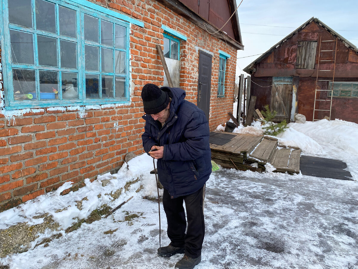 Прошли во двор, помогли с пакетами, подали дедушке его суровую, как и жизнь в одиночестве, палку из согнутой арматуры.