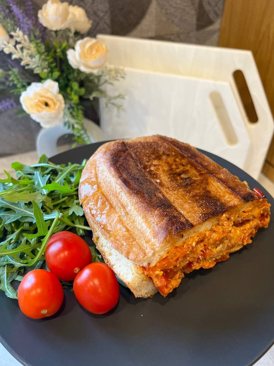 Турецкий завтрак - это не прием пищи, а образ жизни. Ингредиенты: 1/3 батона 150 г филе курицы 1/3 болгарского перца 1 помидор 1 яйцо 2 пластины плавленного сыра слив. масло соль, перец, паприка Приготовление: Приятного аппетита!