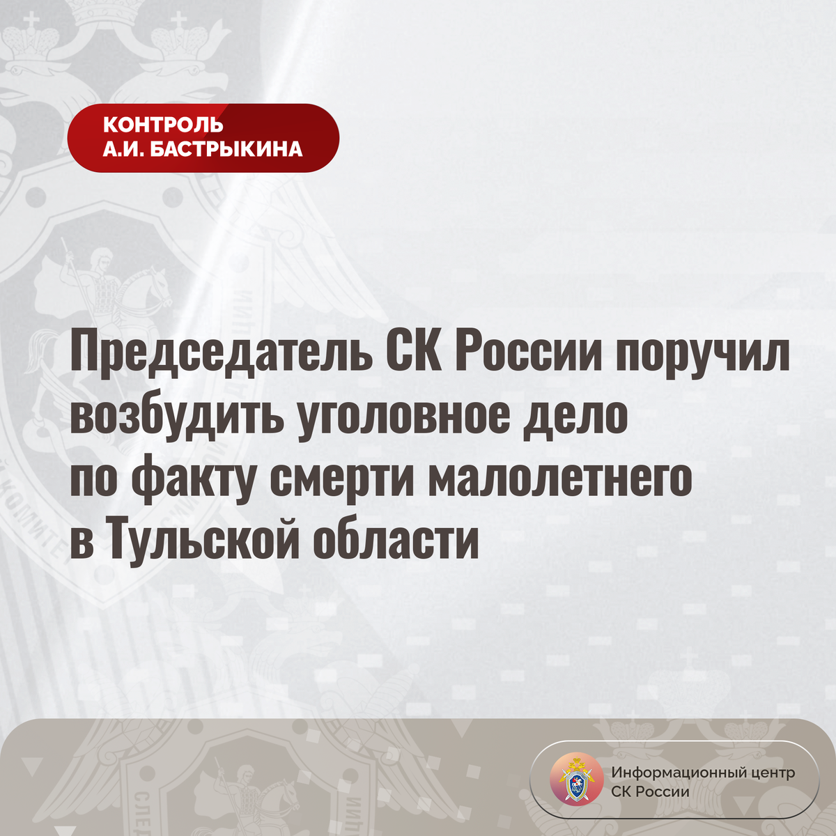Председатель СК России поручил возбудить уголовное дело по факту смерти малолетнего в Тульской области