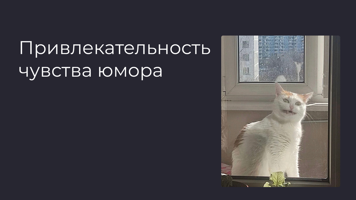 Наткнулась на статью, где приводились результаты исследования привлекательности чувства юмора. В статье говорится, что чувство юмора сильнее влияет на успех свидания и стремление продолжить отношения, чем внешность. Чувство юмора в другом человеке может привлекать нас, не только потому что: - это показатель интеллекта; - уровень шуток нам говорит о проницательности, о «предрасположенности к веселью», о «сформированном образном, ассоциативном и логическом мышлении, о богатом воображении, наблюдательности, смекалке, смелости и уровне знаний»; - мы чувствуем себя счастливее, когда смеемся; - юмор помогает разрядить напряженную ситуацию. Чувство юмора – это еще и умение адаптироваться к жизненным трудностям. Возможно, нас привлекает в собеседнике то, как он переработал опыт, как справился со сложностями, как на них отреагировал. Словно человек оказался над ситуацией. Его не захлестнули эмоции, в которые легко погрузиться и застрять, а стал наблюдателем. А с этой позиции уже проще принимать