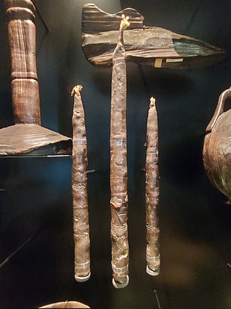 Несколько лет назад немецкие археологи проводили раскопки на алеманнском кладбище в городе Оберфлахт на юго-западе Германии. В одном из захоронений помимо обычного погребального инвентаря были обнаружены три отлично сохранившиеся восковые свечи. Такая находка ー большая удача, потому что обычно воск не сохраняется. Но тут, видимо, сыграли роль влажные условия почвы, которые не дали воску высохнуть.