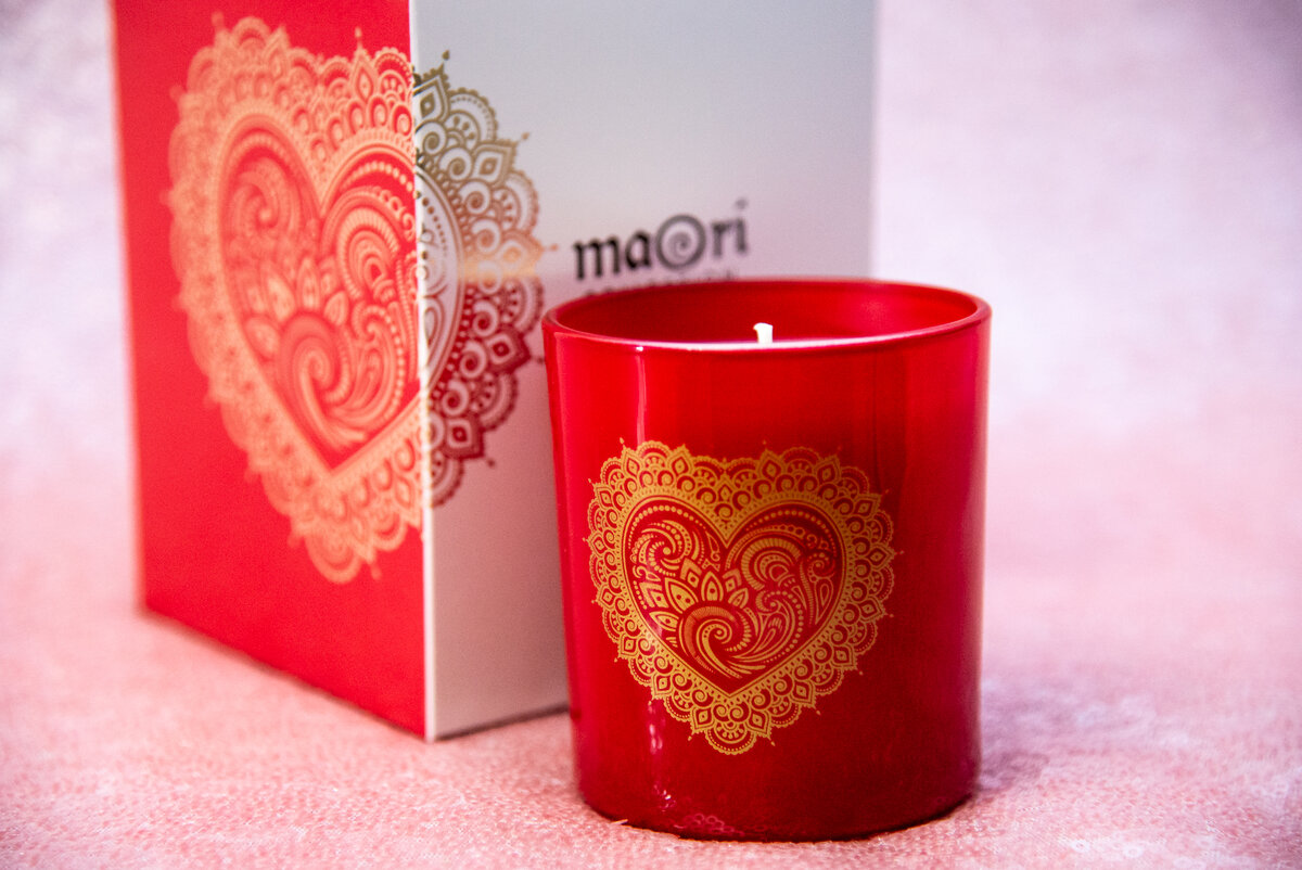 Сегодня речь пойдет о ней - яркой и красивой свече Maori Collection Love Candle . Как видите, упакована основательно, в слюду. Я как коллекционер ароматных свечей, очень рада такому яркому и очень ароматному экземпляру. Выглядит очень нарядно. Стакан изготовлен из красного стекла. Сбоку нанесен рисунок золотыми красками. Стоит открыть коробку как на тебя вырывается яркий аромат лета. Или счастья? Ах, скорее бы лето. Ну, так о чем я. Аромат сочной малины и пиона, жасмина и вместе образуют такой позитивный и радостный аромат. Очень яркий. Впрочем, как и оформление. Такой подарок будет идеален к дню влюбленных, ну или такому же влюбленному в свечи, как я. А вот что пишут маркетологи;: Love Любовь - это ключ, открывающий врата счастья, чтобы подарить нам бесконечное ощущение чуда, скрытое в капле эликсира, вдохновленного абсолютной страстью. Не правда ли красиво. Когда горит это чудо в темноте очень красиво выделяется стакан, красным солнцем. Да и аромат на всю комнату. Лучше