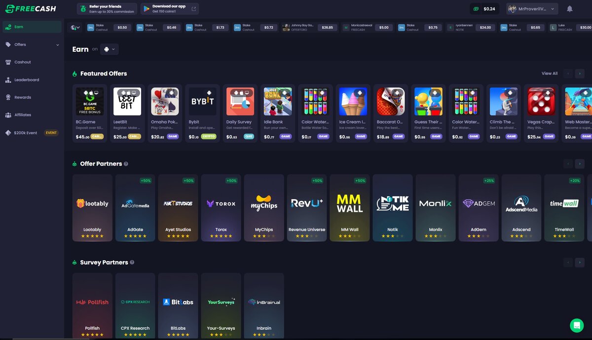 FreeСash - онлайн-платформа для заработка в интернете выполняя простые действия скачать, установить или пройти опросы за деньги. FreeСash является одним из ведущих сайтов опросов и торгов, также имеет связи со сторонними компаниями, такими как AdGate Media, Lootable, AdGem, OfferToro и т.д. FreeСash содержит несколько действий и предложений, которые пользователи должны выполнить, выполнившие эти задания со стен сторонних предложений, вознаграждаются монетами. Как зарегистрироваться Регистрация на данную платформу проходит очень легко как на других подобных сайтах. 1) Вводим электронную почту вашу 2) Придумываем пароль 3) Соглашаемся с условиями предоставления услуг политикой конфиденциальности Также можно зарегистрироваться через Google или Steam Нужно начать с создания учетной записи в FreeСash (переходите по моей гиперссылке) и сразу же вы получаете бесплатный кейс стоимостью до 250.000 монет ($250) на свой счет. После регистрации вы получите бесплатный кейс, с которого заработаете