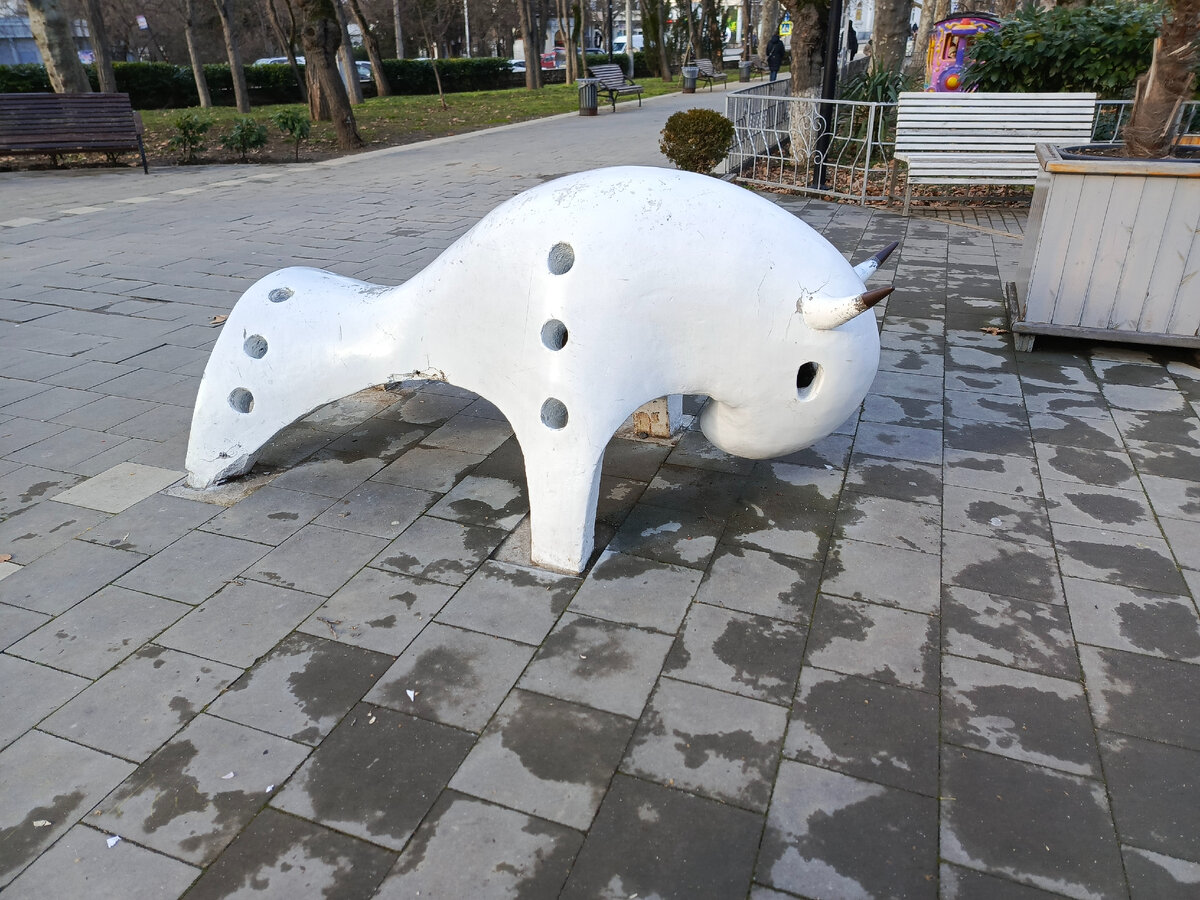 Сегодня погуляем по улице Новороссийской. Особых достопримечательностей там нет, покажу какие есть дома, цветущие растения и конечно же котика. Ну что, пойдём прогуляемся? Изначально покажу быка, который находится в парке имени Марии Байды. Обещала одному подписчику - выполняю. Дальше проходим мимо центрального рынка: Идём по улице Партизанской: Тут меня немного повеселило название клиники: Здание Пассажа рынка вы уже помните: А тут мы уже идем по самой Новороссийской: Дома тут очень разные. Рядом соседствуют частный дом и многоквартирный: Этот дом, как я поняла, жилой, хоть и такой страшненький: На этом доме мне понравились колонны и лепнина: А дальше мы перейдем дорогу и пойдем по другой стороне улицы. Сразу же нас встречает вот такой плакат: А мы пойдём дальше: Встречаем указатель: А вот и сама улица Демидова: Как видите, очень разные дома встречаются: Напротив этого дома уже жимолость активно цветёт: Тут совсем изрисовали дом: А рядом многоквартирный дом: Конечно же я не