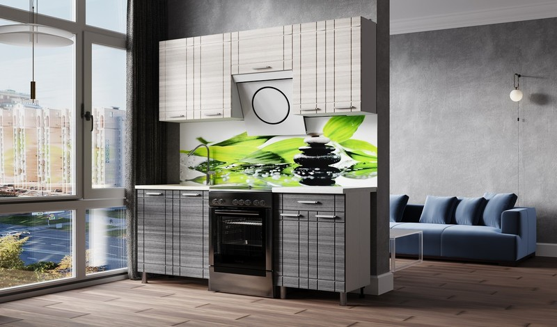 Прямая кухня. Занимает минимум места, проста в установке. Невысокие прямые кухни с горизонтальной ориентацией ящиков выглядят очень компактно, современно и привлекательно. Они не перегружают пространство.