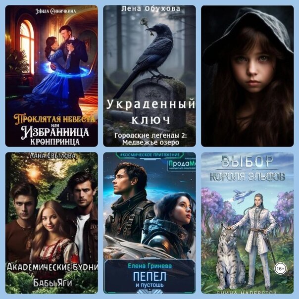 1. "Проклятая невеста, или Избранница кронпринца". Любовное фэнтези. Из-за проклятия меня заперли в башне, наложив запрет показываться кому-либо, пока не вымолю прощение для своего рода. Я должна была молчать и не помогать тому красивому юноше, но не смогла… Я наследный принц, опора и надежда Верглавы. Моя судьба давно расписана. Невесту мне выбрал отец, но позволил самому за ней поехать. Все шло неплохо до того момента, пока я не свернул с протоптанной дороги… Книга: https://vk.cc/cuccrT 2. "Украденный ключ". Мистический детектив. Несмотря на все трагические события, сопровождавшие подготовку к открытию, гостиница на Медвежьем озере принимает первых гостей. Юля твердо намерена в скором времени наладить работу и заполнить все номера, а Влад больше увлечен поиском объяснений своему внезапному прозрению. Обоим приходится вновь начать собственное расследование, когда в гостинице одна за другой пропадают две девочки, и подозрения полиции опять падают на Юлю. С возвращением зрения Влад