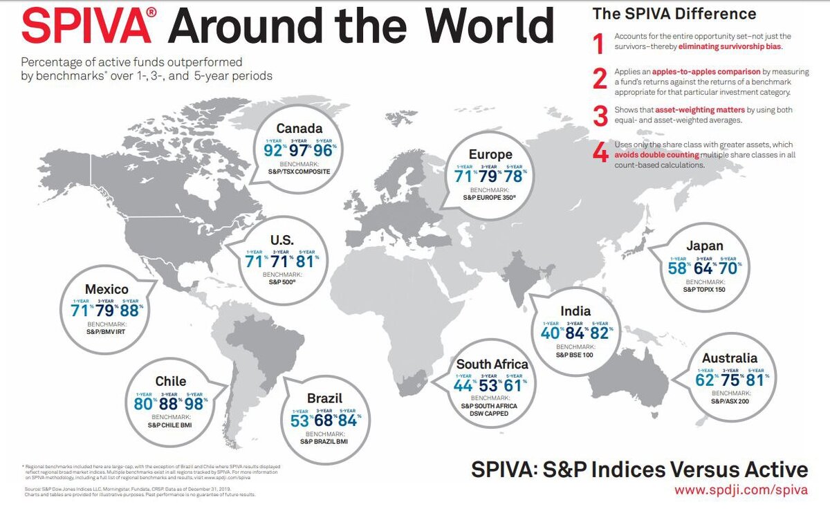 🔸Сегодня с вами поговорим о том, как сравнить эффективность своего инвестиционного портфеля 🔸И для этого обратимся к квартальным данным компании SPIVA, показанные на слайде к посту 🔸Что мы видим? Количество активных фондов проигравших соответствующему индексу. Первая цифра показывает процент активных фондов проигравших индексу страны за 1 год. Вторая за 3 года, третья за 5 лет. Но для простоты понимания, можно ещё сильнее упростить задачу и сказать так: процент менеджеров, проигравших индексу страны 🔸Индекс страны состоит из ведущих компаний, которые значительно влияют на экономическую деятельность страны и являются основной экономики 🔸Глядя на слайд становит понятно что в 60% - 80% процентов случаев, менеджеры проигрывают в доходности индексам страны. Что тогда говорить о доходности индивидуальных инвесторов, чьи навыки гораздо хуже. Из этого следует.... 👉🏻 Индекс на рынок страны, является эталонным показателем с которым можно сравнивать результаты своего инвестиционно