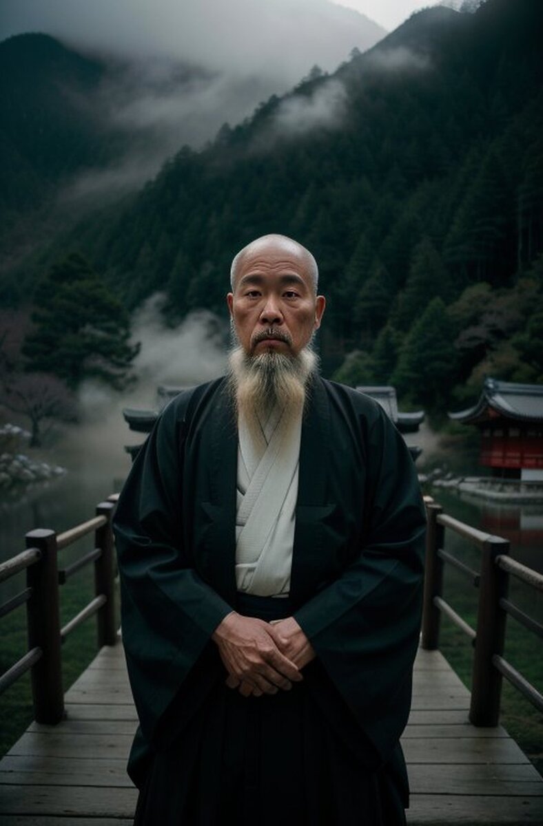 Prompt: film still, Old Japanese monk, misty mountain shrine, meditative posture, flowing beard, mist-kissed surroundings, profound stillness, spiritual connection, dark hour lighting, smooth shading Negative Prompt: render, cgi, drawing, cartoon, painting, illustration, watermark, logo, deformed feet, bad quality, low res Ещё больше красивых промтов для вашего творчества только у нас в телеграм: https://t.me/ai_vision1