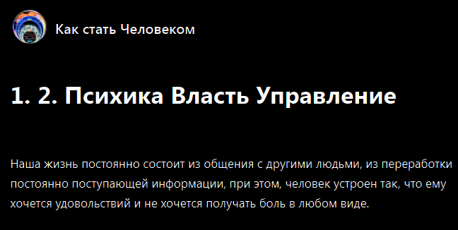 Человечный строй психики Характеризуется осознанием некой своей главной миссии – быть праведным наместником на Земле. На Руси издревле говорили: «Живи по Совести!» При этом, именно у Человека развита Воля до уровня, что он с лёгкостью исходя из праведной целесообразности которую он вычислил по Совести, может подчинить себе все свои инстинкты, привычки и возможный демонизм для установления справедливости и гармонии.