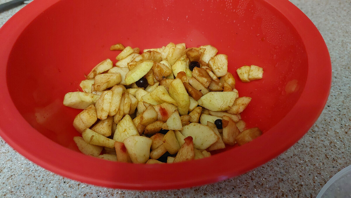 Я две субботы подряд пекла пирожки с яблоками. Яблоки еще остались, а с тестом возиться уже надоело. Нарезку оставила в холодильнике. Вот эти яблоки у меня 2 недели под крышкой в холодильнике пролежали, ничего с ними не сделалось. Представляете? Это яблоки без сахара, для цвета и кислинки добавлено несколько ягод смородины. Ягоды и продлили жизнь яблочной нарезке. Дальше проверять срок сохранности не решилась, по-быстрому к чаю приготовила десерт в лаваше. Хлопот вообще никаких, а результат отличный. Начинку сделала любимым способом: слегка потушила на сливочном масле и чуть подсластила. Слишком сладко не люблю, поэтому сахара совсем чуточку. Благодаря смородине, начинка приобрела красивый цвет. С лавашем совсем просто. Разрезала на 4 больших квадрата. Для слоистости промазала растопленным сливочным. Разложила яблоки по одной стороне квадрата и свернула в трубочку, загнув края, как блинчик. Осталось обжарить с обеих сторон на сливочном масле до румянца. Чтобы не разворачивались, жар
