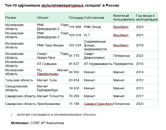Новый распределительный центр станет уже третьим и самым крупным для компании в Московском регионе: общая площадь трёх РЦ ВкусВилл составит более 300 тыс. кв. м. Объект станет важным инфраструктурным элементом как для поддержания дальнейшего расширения сети магазинов, так и для развития компании в сегменте e-grocery, в частности оперативного пополнения товарных запасов для дарксторов. В отличие от других мультитемпературных складов, где в среднем низкотемпературные помещения занимают около 40% здания, этот объект практически полностью состоит из них (90% общей площади). Это обусловлено фокусом ритейлера на работу именно с продуктами питания, в отличие от многих других розничных сетей, которые на своих распределительных центрах обрабатывают непродовольственные товары, для которых не требуется специализированных температурных помещений.
