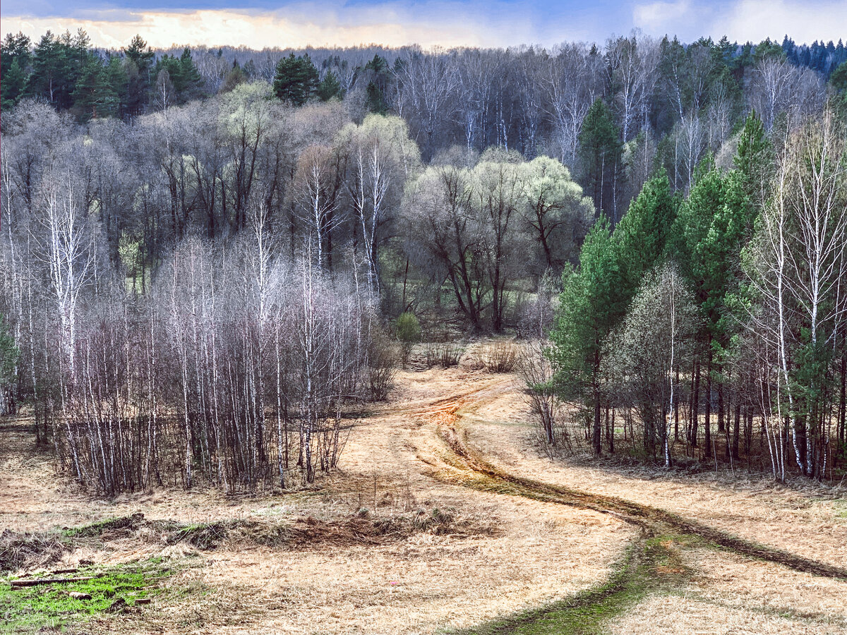 Друзья, с радостью хочу поделиться с вами ещё одним шедевром. Снимок волшебный, объёмный и красочный. Снимок сделанный с любовью к природе. Ваш взгляд мгновенно погружается в необъятную осеннюю панораму, захватывающую своей чистой, остро ощущаемой прозрачностью воздуха. Фотография словно оконное стекло, за которым открывается настоящая картина природы: нежная и тихая, охваченная первыми дуновениями осени. Посмотрите в даль, там внизу холма, простирается лес. Берёзы, несмотря на потерю листвы, прекрасны, грациозны и стройны, без листвы их тонкие ветви издали похожи на туман, а зелёные ели успокаивают своим устойчивым присутствием, напоминая о непобедимой жизненной силе, лежащей в природе. Оттенки желтоватого песчаника приобретают особую яркость на фоне всех этих приглушенных тонов природы. Петляющая грунтовка, предстающая перед зрителем, придает снимку динамичность и гармонично вписывается в слоистый рисунок пейзажа. Невероятная нежная палитра красок служит визуальным эхо эмоций, котор
