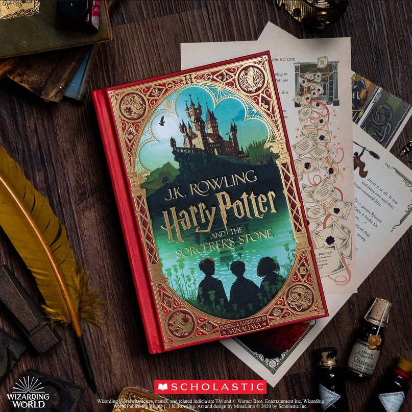Книга «Гарри Поттер и Философский камень» с иллюстрациями дизайнерского дуэта MinaLima вышла в печати в 2020 году. Это новое издание с интерактивной частью — некоторые вклейки можно развернуть. Команда дизайнеров приготовила для читателей несколько бумажных сюрпризов, например, раскладное письмо о зачислении в Хогвартс, список покупок для Косого переулка, волшебный вход в Косой переулок и вырезанный складной замок Хогвартс. На этом развороте — Косой переулок: О студии MinaLima MinaLima — лондонская студия, специализирующаяся на графическом дизайне и иллюстрациях. Ее основатели — Мирафора Мина и Эдуардо Лима, объединившие свои усилия в 2001 году, чтобы создать графический дизайн фильмов о Гарри Поттере. Именно их мастерство создало письмо Гарри о зачислении в Хогвартс, Карту Мародеров, газету «Ежедневный Пророк», билет на «Хогвартс-Экспресс» с платформы 9 ¾ и многое другое, что только можно видеть в фильмах на листе бумаги или пергамента. Они работали и над дизайном фильмов «Фантастичес