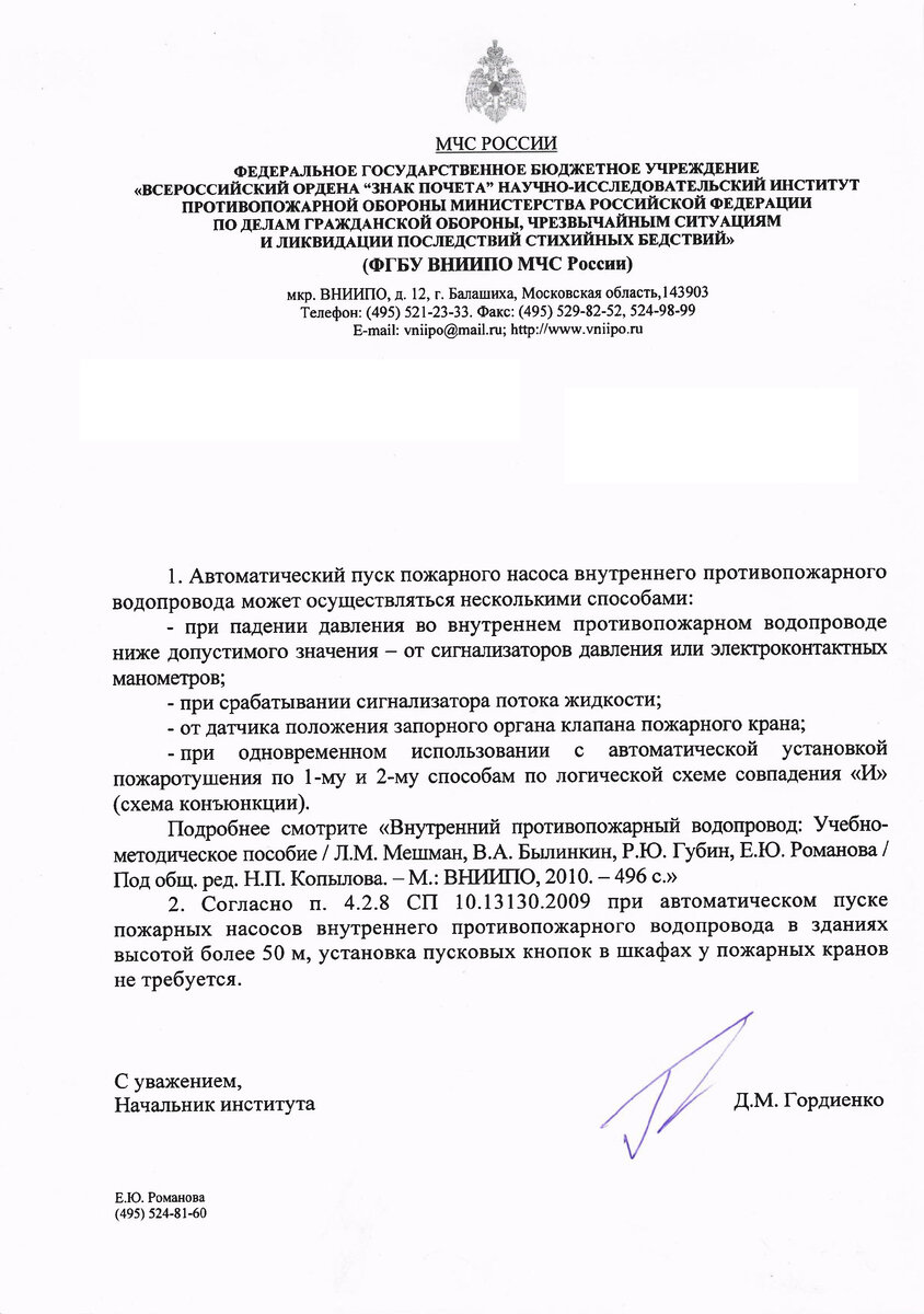 Пуск пожарных насосов