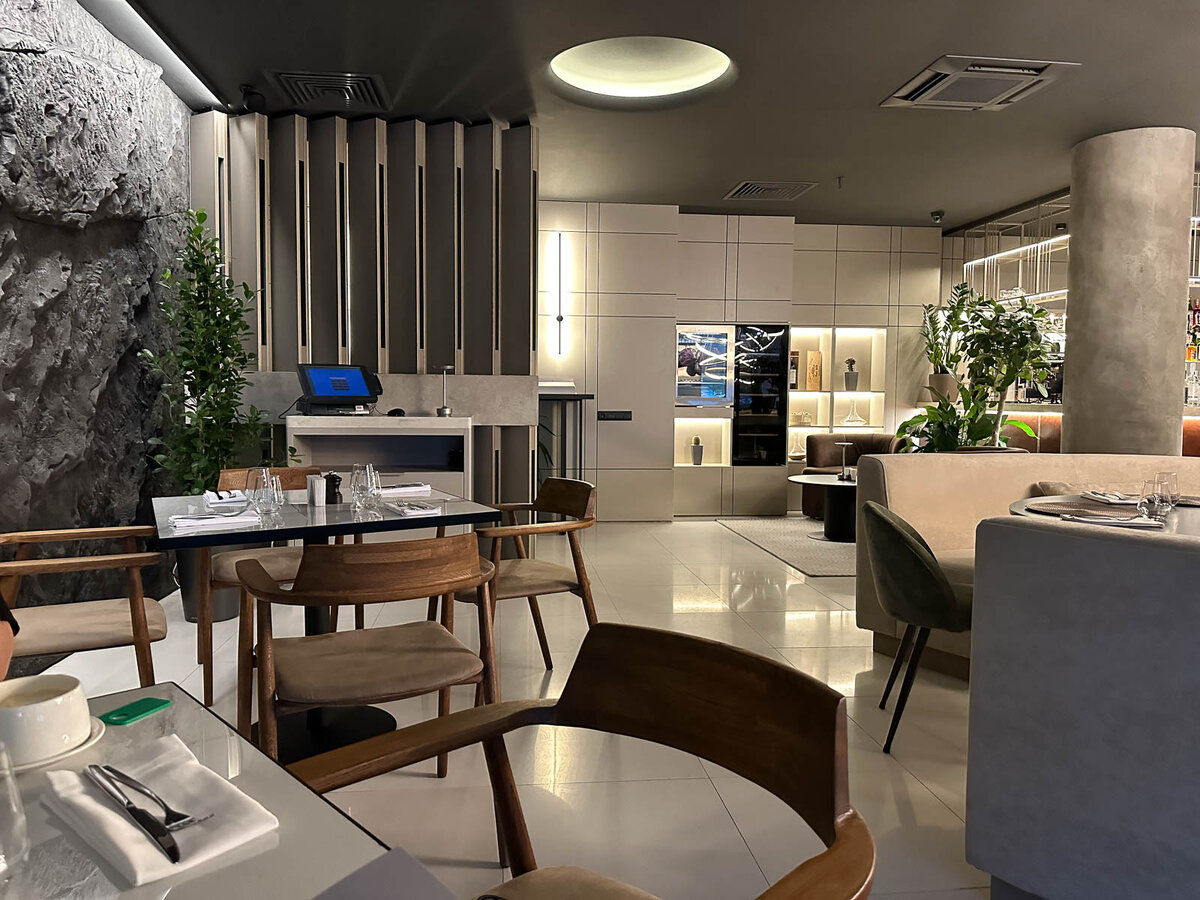 Так называемое «Эво» кто-то скорей всего купил и обновил, ну, только ресторан, в фитнес-залах и так всё прилично. Единственный ресторан, в меню которого прописано КБЖУ, потому что правильное, фитнес-полезное питание. Они, и ещё в кафе «Гараж» раньше было, если память не подводит. В меню «Эволюшен» фитнес-завтраки с 9 утра и основное с борщами, стейками из цветной капусты, плюс иногда шеф-ужины от Вадима Мачальского, это я в их инсте прочитал. Однозначно выигрышно, когда у заведения есть своя большая парковка, достаточно подъехать под шлагбаум, и он пропустит вас на новый уровень сложности. Вход в ресторан лежит через гардероб. АТМОСФЕРА Плюс десять к уютности ресторана благодаря мягкому свету, удобным диванам, растениям и горным стенам, как будто завтракаешь в гроте. МЕНЮ Небольшое, чуть насыпали простейших завтраков без яиц Бенедикта, протеиновых коктейлей и основное из двенадцати блюд. Сегодня пройдёмся по полезным завтракам с ценами, как и везде, если не брать лососевый боул за 38р/