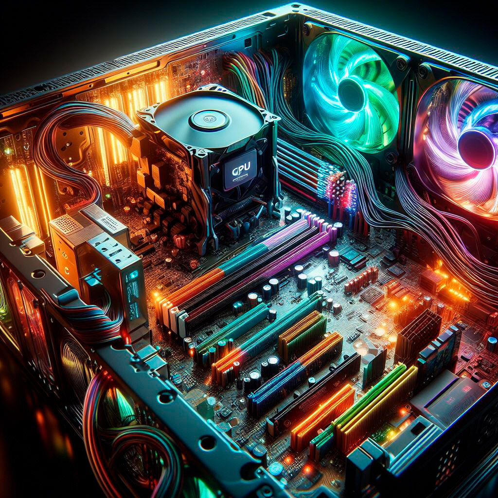 - Найдите материнскую плату внутри корпуса компьютера. Обычно она крепится к задней стенке корпуса и имеет большой размер и много разъемов и слотов. На материнской плате вы можете увидеть процессор, оперативную память, видеокарту и другие компоненты, которые подключены к ней.