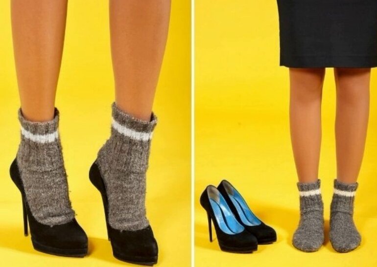 Этот метод очень простой и эффективный, но может подойти не всем. Например, девушкам, которые приобрели классные туфли и хотят выставить их на показ. Они будут просто ужасно смотреться на ногах с толстыми носками.
