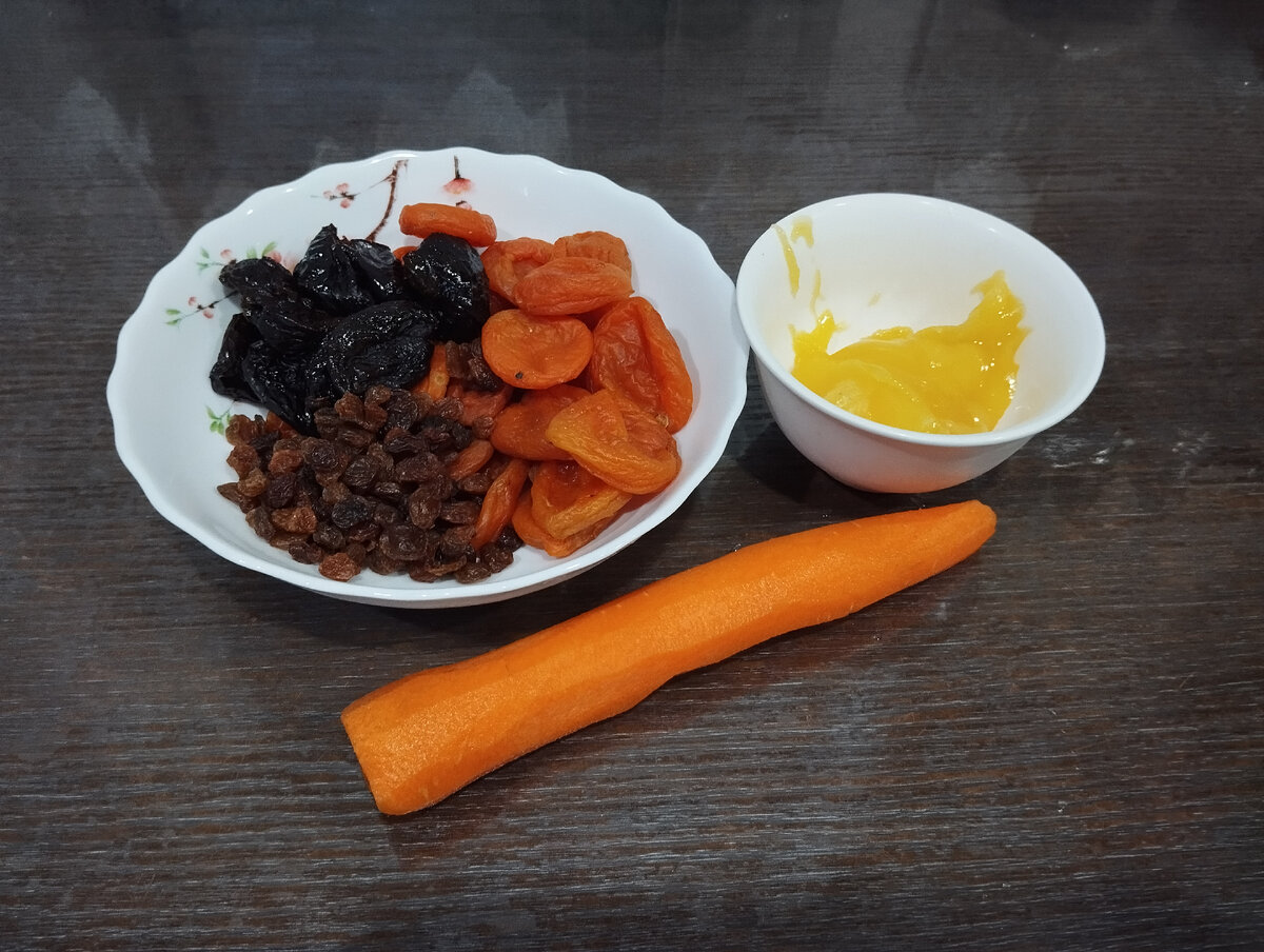 Друзья,всем привет 👋. Почему бы не попробовать приготовить вкусный и полезный десерт! Делюсь с вами рецептом. Готовьте с удовольствием и радуйте своих близких 🤗😍 Ингредиенты : Курага 100 г Чернослив 100 г Изюм 50 г Морковь 1 шт. Мед 1,5 ст. л. Масло растительное 3 ст. л. Вода 50 г Сухофрукты промыть и залить кипятком примерно минут на 15. Морковь нарезать кружочками. На сковороде обжарить морковь на растительном масле. Добавить мёд и перемешать. Довести морковь до карамелизованного состояния. Добавить сухофрукты, немного воды и протушить несколько минут. Удачного приготовления и приятного аппетита !