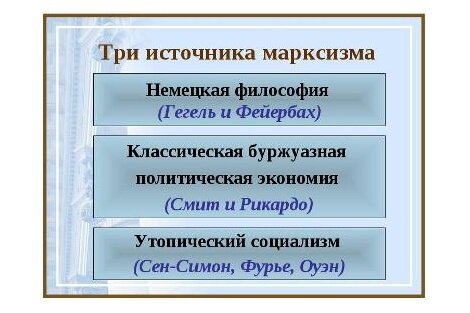 Маркс разработал свою одноименную теоретическую систему на основе трех основных источников: немецкой философии, французском утопическом социализме и английской политэкономии. В своих ранних работах Маркс проявлял большой интерес к праву и философии, его более поздние работы были больше посвящены политической экономии и политической стратегии.
