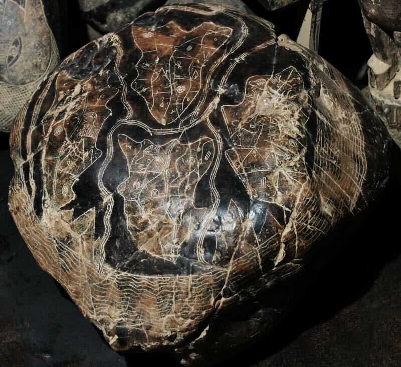 Но при взгляде на камень с такой картой возникает простой вопрос: некий безымянный художник потратил время на то, чтобы изобразить простенькие контуры материков (скорее всего, географическая карта для такого художника была такой же привычной для него вещью, как и для сегодняшнего третьеклассника), а потом, от нечего делать, стал оконтуривать карту окружными линиями, изображая «границы мира». Причем, этого художника (или, наоборот, современного фальсификатора) ничуть не смущала проблема гравировки по андезиту. Красоты ради или чтобы время убить, нарезать по окружности на андезитовом валуне 20 — 25 линий (а таково число линий на данном камне)? Каждая линия имеет длину более 2 м, соответственно, для такого «развлечения» художнику надо было выгравировать на камне в среднем 40 — 50 метров линий.