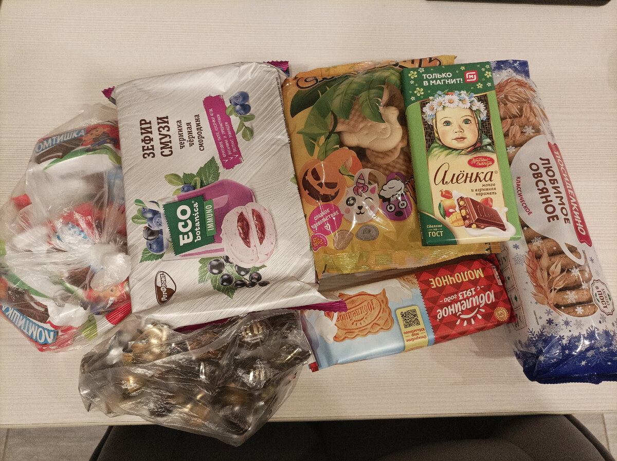 Решила на январь не устанавливать лимит на покупку продуктов, посмотреть, что из этого выйдет. Тем более запасов дома осталось мало, мясного практически не было. 8 января мы приехали домой из гостей, после длинных новогодних каникул, ну, конечно, нужно было идти в магазин. Что купили: Эх, купила свой любимый зефир, дорогой стал, зараза, даже по скидке, очень его люблю, такой вкус покупала впервые, неплохо, но, моей любовью остаётся брусничный. Ломтишка вкусная очень, конечно. Картофель, морковь, помидоры, мандарины, бананы: Решила немного пошиковать,, побаловать себя - купила морепродукты себе, шпротов сильно захотелось, ну и камамбер попался по скидке, я его не очень, но мои любят: Любимые сосиски, , кабачковая икра: Итого: 2452 руб Ещё были покупки: молоко и яйца и хлеб 270 руб Всего: 2722 руб Ну вот, начало положено, потрачено прилично, а съели очень быстро!