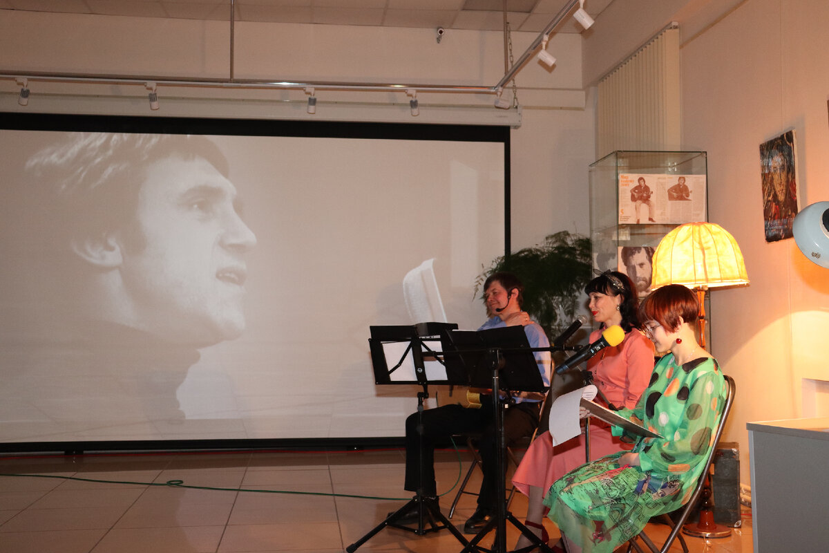 На днях в картинной галерее музейно-выставочного комплекса «История БАМ» состоялся музыкально-поэтический вечер, посвящённый дню рождения Владимира Высоцкого. Организаторы подготовили обширную программу: в ней прозвучали стихи и песни знаменитого поэта и барда, отрывки из интервью и кинофильмов с его участием. Бесспорно, звездой этого вечера стал большой любитель творчества Владимира Семёновича, талантливый гитарист и немножко сам бард, монтёр пути четвёртого разряда ПЧ-23 Александр Стёпин. Собравшиеся с удовольствием послушали в его замечательном исполнении ряд «центровых» песен Владимира Высоцкого: «Очи чёрные», «На братских могилах», «Если друг оказался вдруг…», «К вершине» («Здесь вам не равнина…»), «Лирическую» (посвящённую Марине Влади). При этом заметим, что многие ему подпевали. А экскурсовод картинной галереи Марина Голованова неожиданно для всех открылась новой гранью своего таланта: дуэтом с Александром они исполнили шуточную песню «Диалог у телевизора». После бурных аплоди