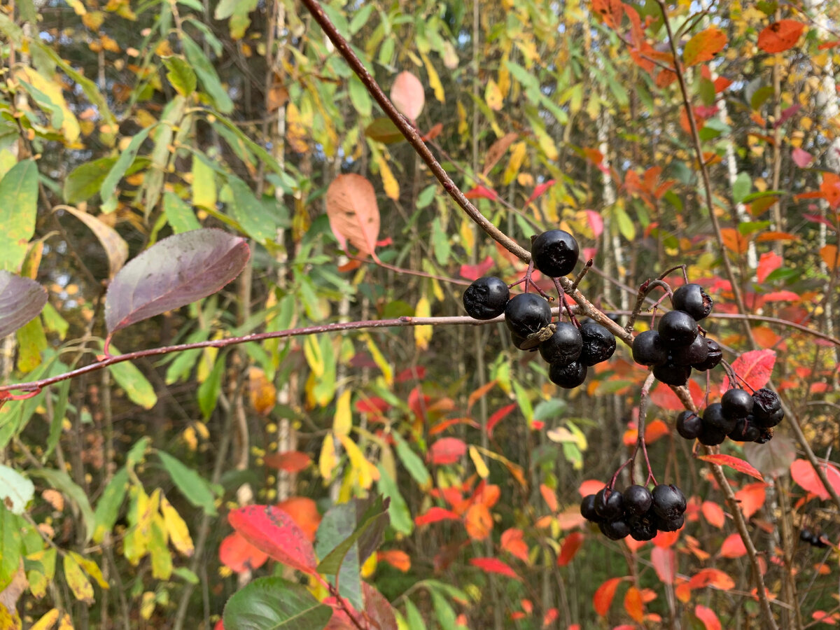 У нас пошли грибы. Да, дело было осенью, как видно по фотографиям. Примерно в четверг, мне позвонили из дома, и сообщили, что народ таскает корзинами грибы. Да и не просто грибы, а кучи опят т белых. Погодка стояла просто супер: с понедельника и до ночи среды были дожди. а температура около 14-17С тепла, что для грибов просто самое то, что нужно. Ну и за пару дней начался рост, я так думаю. У меня хорошее настроение, осталось отработать четверг и пятницу, и домой, чтобы в субботу выйти пораньше. Такие были планы. Но так получилось, что в пятницу вечером я объелся, да и за компьютером дома просидел допоздна, и даже не спас будильник. В итоге, пока проснулся, пока все дела, вышел уже около девяти часов утра. Понятное дело, что ещё нужно дойти до места, и думать о том, что я первый и найду грибы, уже не приходилось. Но, хотя бы погуляю, а там, как пойдет. Подходя к лесу, увидел заросли черноплодки, конечно же покушал её, нравятся мне эти плоды. Кстати, однажды наблюдал, как мелкий грызун