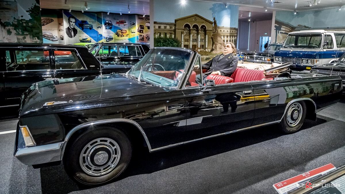 В экспозиции Музейного комплекса в Верхней Пышме мы можем увидеть первый советский "парадный" кабриолет ЗиЛ-117В. Он создан не на базе лимузина, а на базе седана - у него двухдверный кузов для повышения прочности. Всего в период с 1972 по 1979 год построено 10 автомобилей. ЗиЛ-117 - с кузовом седан создан на базе лимузина ЗиЛ-114, говорят что он был создан по личному распоряжению Л.И. Брежнева, который любил лично "поддать газу". ЗиЛ-115 (4104) - выпускался после ЗиЛ-114 с 1978 года, так сказать очередной "флагман" советского автопрома. Правительственный бронированный лимузин ЗиЛ-41052, построен на основе "бронекапсулы". С 1987 по 2003 год построено 14 автомобилей. Автомобиль сопровождения ЗиЛ-41072 "Скорпион" выпускался с 1988 по 1999 год, построено 7 автомобилей. Оборудован внешними подножками и поручнями, сдвижным люком, откидными задним и быстрооткрывающимися боковыми стеклами, усиленная передняя часть для возможности совершения "тарана".