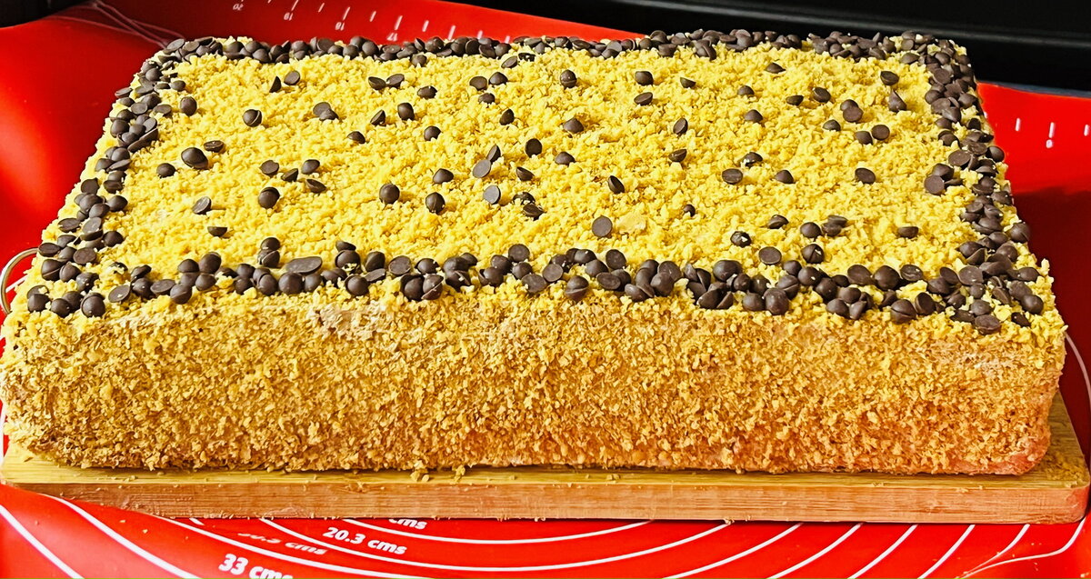 Простой в приготовлении, но очень вкусный торт, минимум ингредиентов смешать в миске и в духовку на 5 - 7 минут. И, для начала, варёную сгущёнку с яйцами объединить миксером, добавить размягчённое сливочное масло и перемешать до однородности. Всыпать стакан муки с разрыхлителем и солью и быстро приготовить очень мягкое тесто. Разделить тесто пополам и приготовить 2 больших коржа размером 30х40 см за 5 - 7 минут при температуре 180 градусов, как показано на видео рецепте. Оставить коржи остыть и приготовить крем. Варёную сгущёнку перемешать миксером с холодными сливками до устойчивой консистенции, Каждый корж разделить пополам, обрезать края и собрать торт по принципу корж-крем-корж-крем, обрезки измельчить в блендере и оформить торт и можно подавать на стол. Приятного чаепития. Ингредиенты: 2 яйца мука - 1 стакан (250мл) - 160 г варёная сгущёнка - 1 банка - 380 г сливочное масло - 100 г разрыхлитель - 15 г соль крем: сгущёнка - 350 г сливки 33% - 350 мл #кулинария#выпечка#торт #начинка